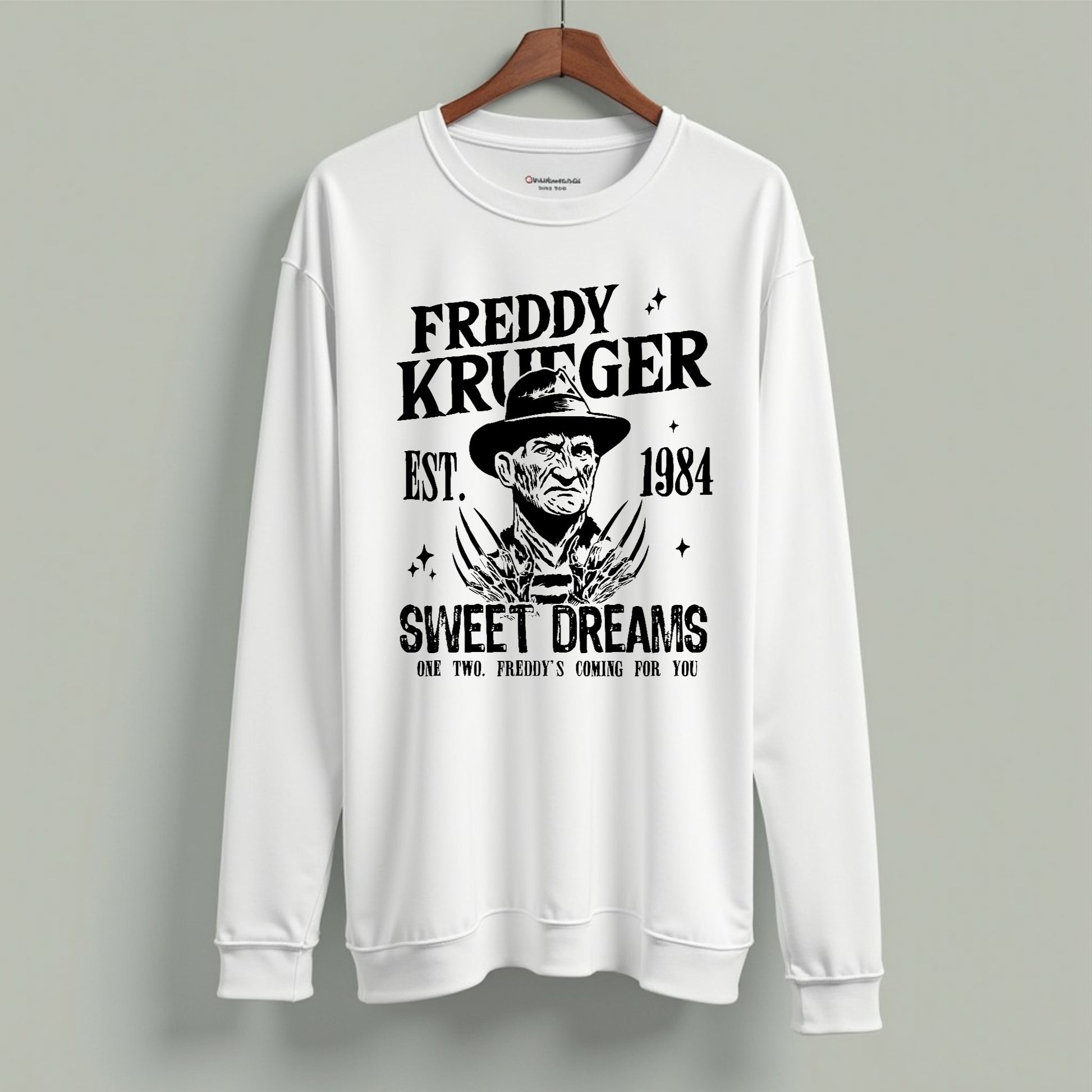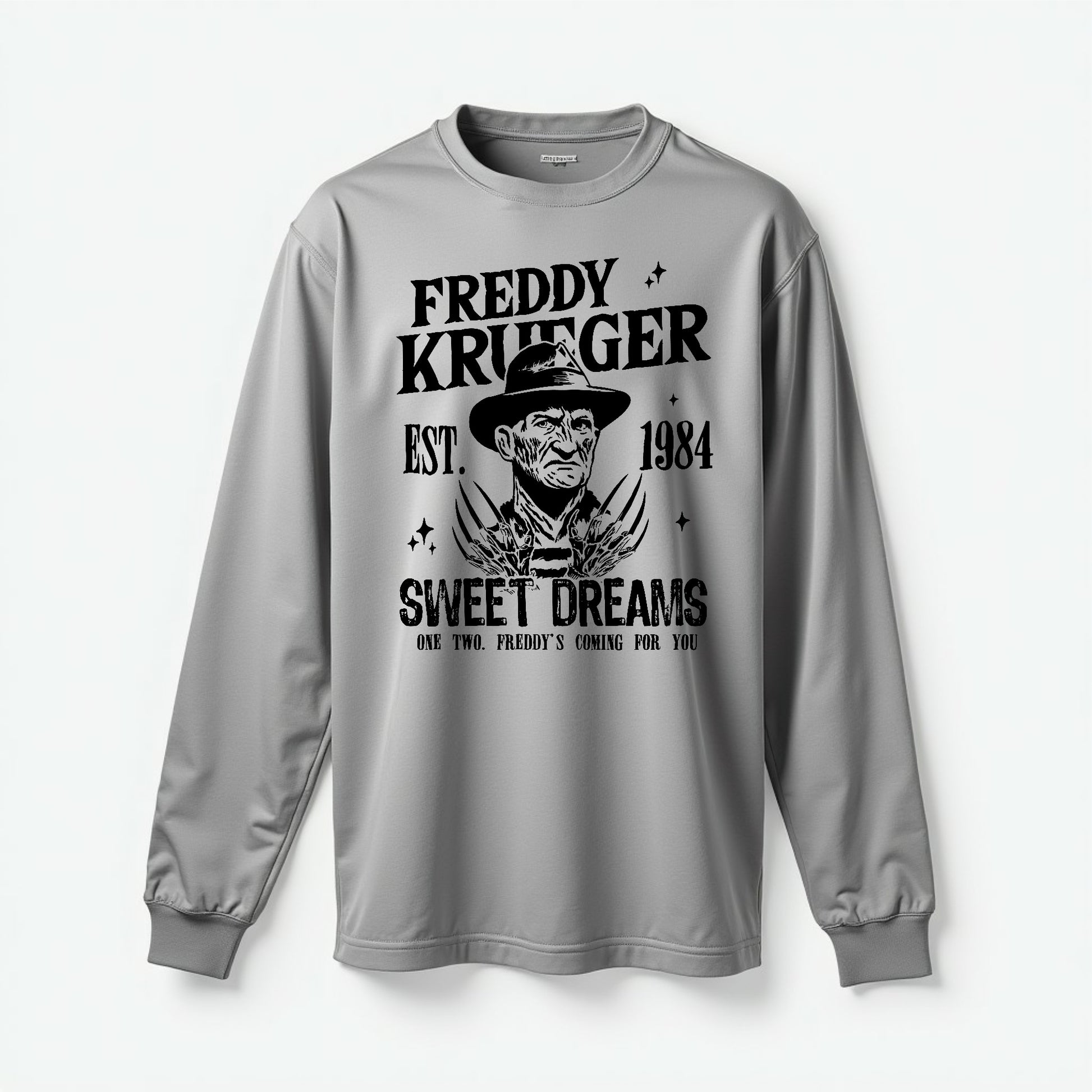 This long sleeve crewneck T-shirt is made from 100% cotton, offering comfortable breathability and a soft feel ideal for everyday wear. Featuring exclusive designs from the Freddy Krueger Halloween collection, it blends iconic horror style with durable fabric, perfect for showing your fandom while staying cozy during the spooky season.
