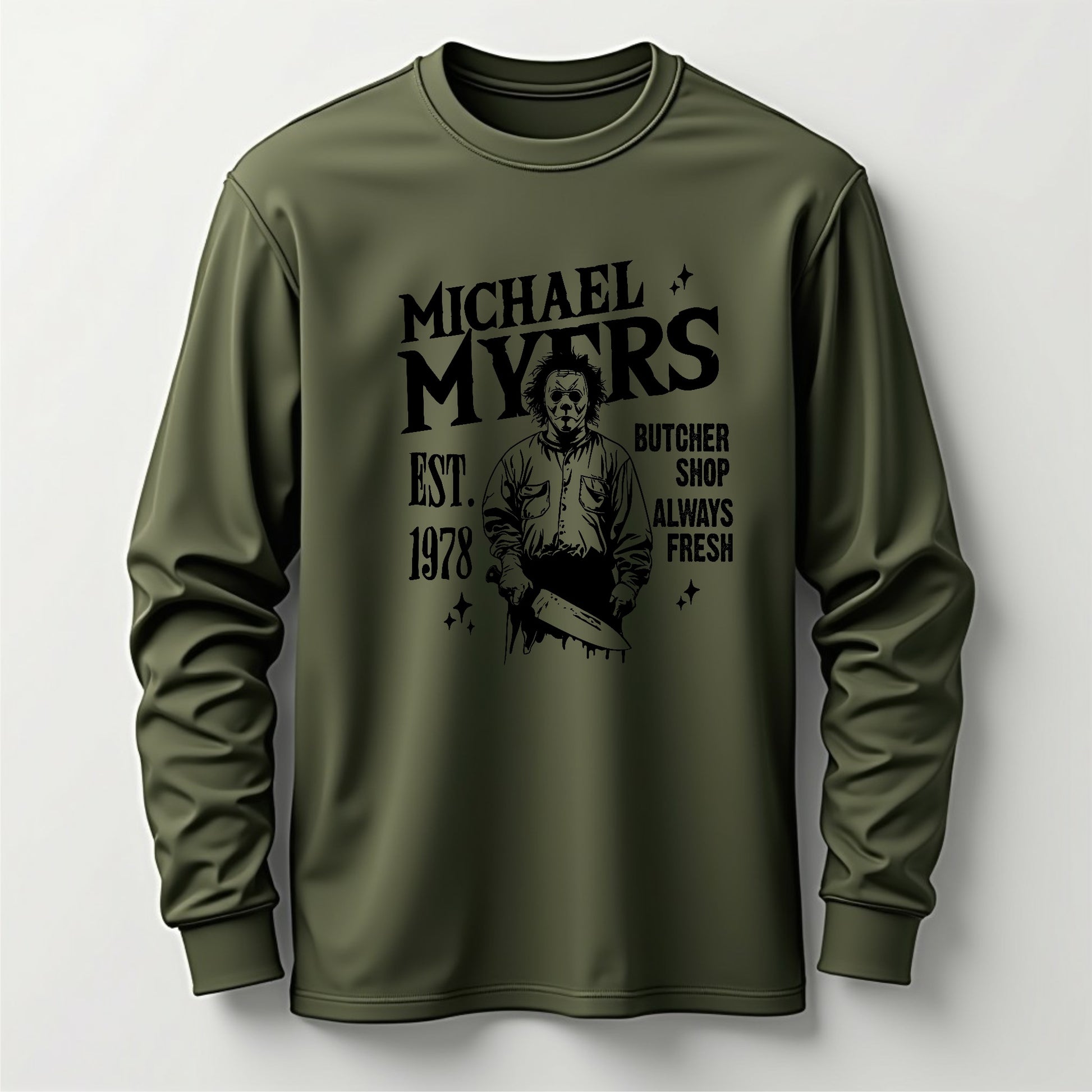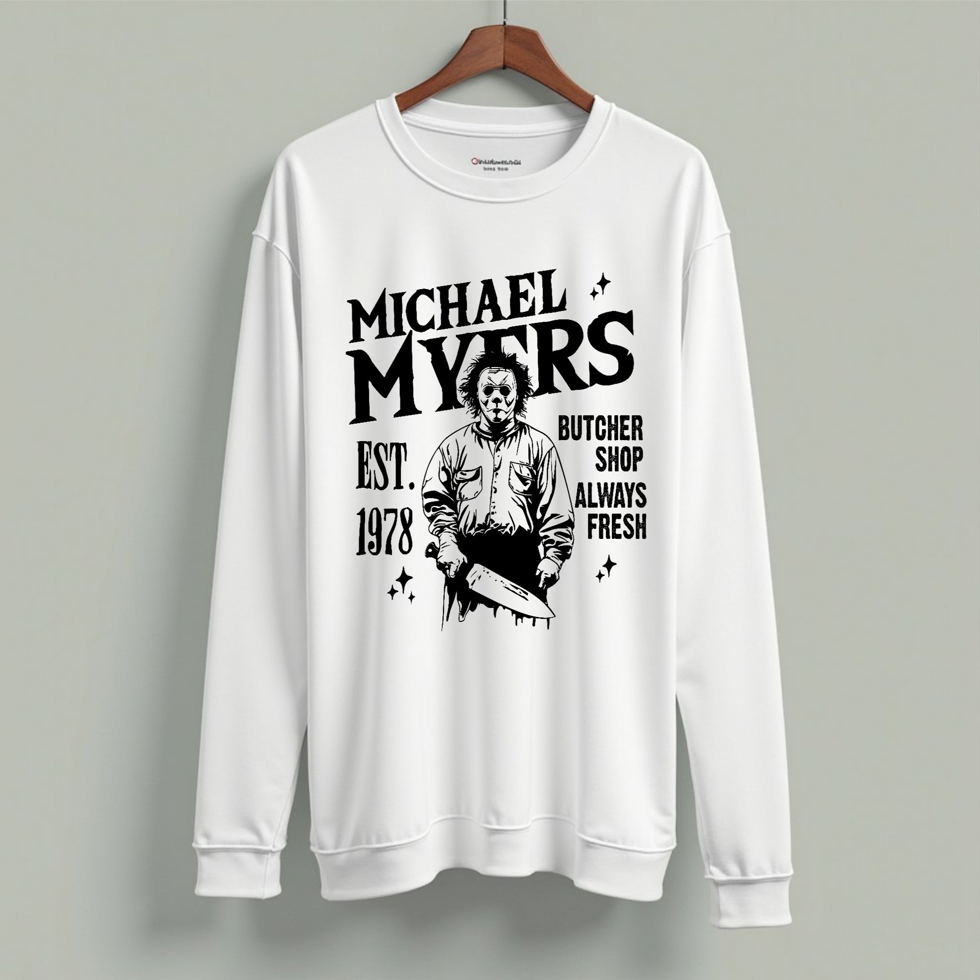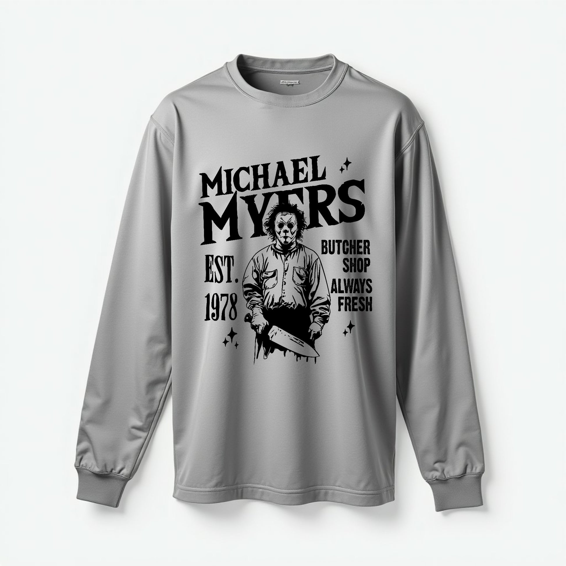 This long sleeve crewneck T-shirt is made from 100% cotton, delivering breathable comfort and a soft texture perfect for daily wear. Showcasing exclusive designs from the Michael Myers Halloween collection, it merges iconic horror elements with sturdy fabric, ideal for expressing your fandom while remaining comfortable during the spooky season.